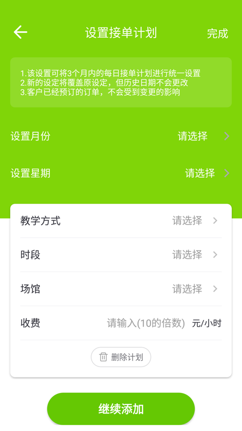 高投体育教练端app教练将授课周期、时段、地点、收费标准、方式(共享教学或驻场教学),通过app发布,高投体育教练端软件下载之后用户可在线预订教练设置的接单计划,生成订单后,由app推送给教练,有需要的用户欢迎来yn下载站下载使用。