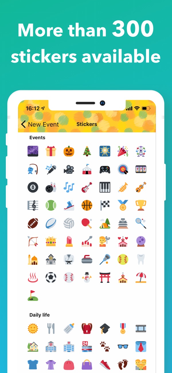 提供300多个贴纸!事件的颜色可以根据其类别进行更改。