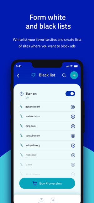 没有更多的广告!启用此col广告过滤器,即可在您喜欢的网站上享受无广告的Internet浏览和流式传输。您不仅可以创建用于阻止来自不同网站的广告的白名单和黑名单,还可以享受反跟踪功能,以确保您的在线安全。