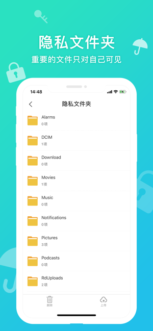 2、隐私文件夹:将您的隐私数据直接保存在云端,需要使用时再同步到本机使用。