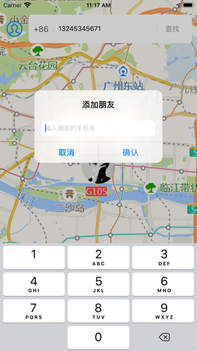 3、根据对方的手机号码作为ID记录位置信息,并在地图上进行显示。