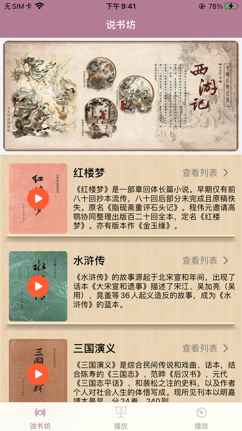 3、这里有经典的名著也有其他风格题材的书籍,在线都是听书的。