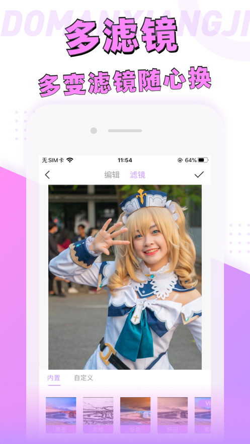动漫相机软件是一款非常可爱的照片图像类软件,为用户提供自拍图片的编辑处理,可以将自拍照转为卡通动漫的模样作为自己的社交平台头像,瞬间提升用户的图片质感。动漫相机下载安装后集合了修图、美图、拼图、照片拼图等各种图片处理功能,让用户不再为图片编辑而发愁。