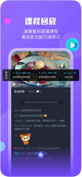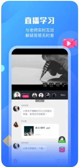 【强大的直播教学工具】自主研发的在线直播系统,支持语音/讲义/白板/摄像头/屏幕分享/多媒体播放等直播形式,并提供各类便捷的直播辅助工具。