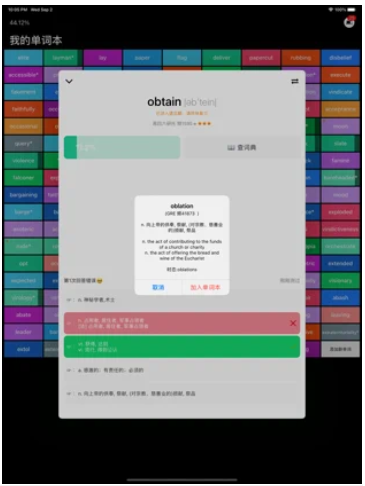 您可以将想要学习的单词加入“单词块”,按照应用的指导背诵和测试这些单词。AI人工智能会追踪每一次学习过程,评估出您对每个单词的掌握程度,并提醒在合适的时间进行复习。富有现代感的全新设计,更能为您带来前所未有的沉浸式体验。