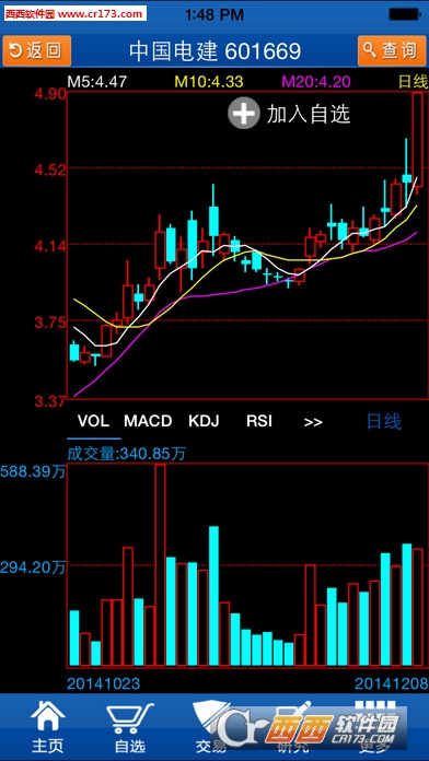 系统分时、K线界面的指数价格都采用大字报价的方式,使用户可以一目了然的掌握当前指数及股票的涨跌动态。