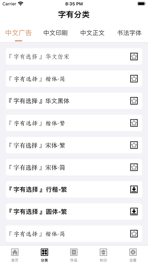 用户可在APP内选择感兴趣的字体,在本APP内使用;