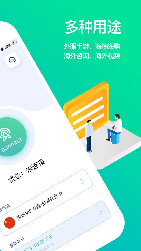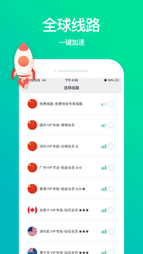 3.支持全区服加速。机器算法精选最优路径,数千节点免于手选,一个账号畅玩全区服,与每个国度玩家同台竞技。