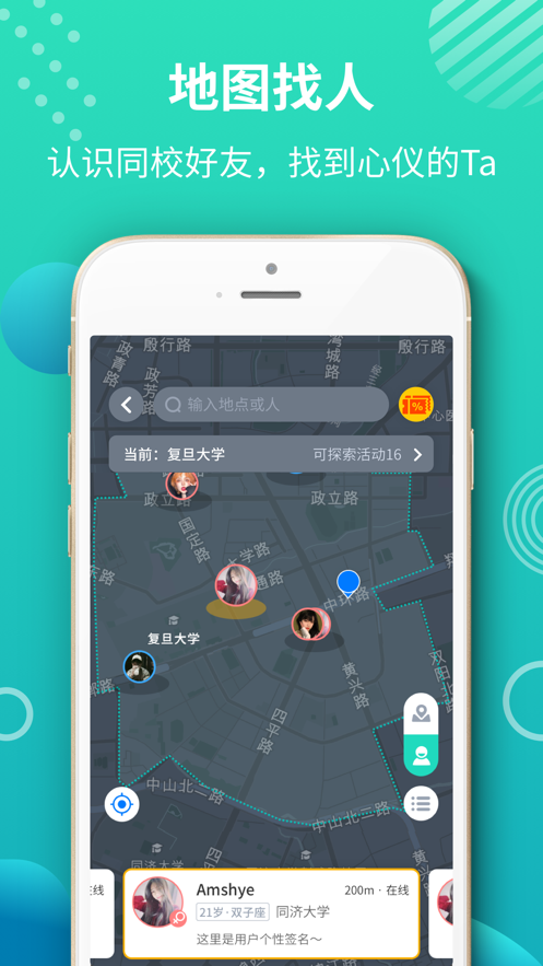 1、全新的地图搜人,可以让你自己在指定的地图位置中搜索陌生人。