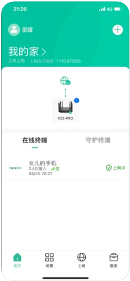 不仅可以查看接入终端的名称、数量、网速等信息,而且支持终端绑定、修改名称、加入黑名单等操作,防止蹭网,保障安全。