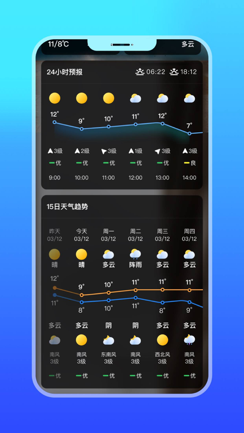 2、软件拥有准确的天气详细信息,拥有个性迷人的界面,可以帮助用户轻松掌握天气状况。