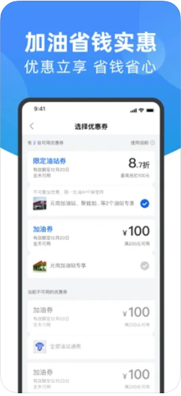 直降、节日红包、加油优惠券等多种优惠方式,为车主节约加油成本