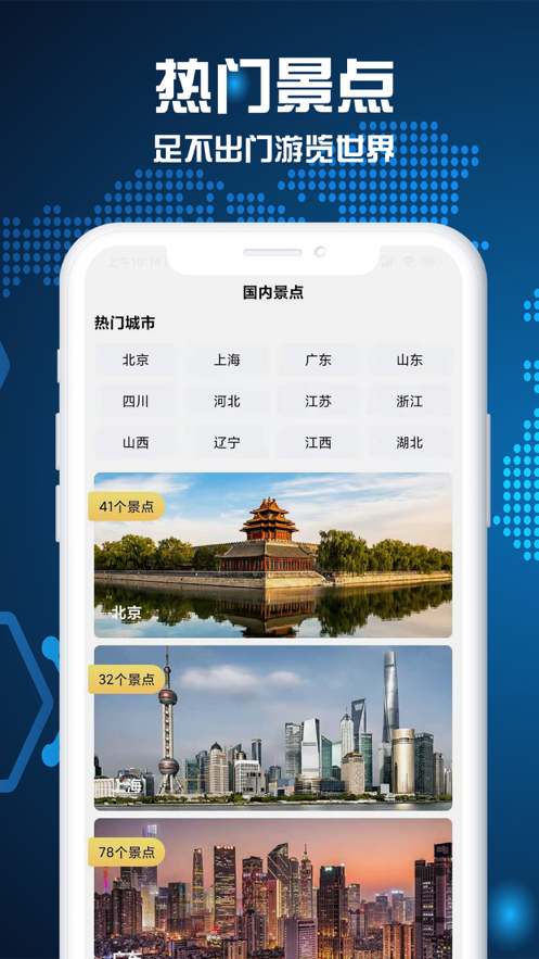 万里长城、故宫、埃菲尔铁塔、埃及金字塔,世界那么大,你想去看看吗?3D世界景点中为用户呈现了全球各地著名景点的三维图形,让你足不出户即可畅游全球。使用软件的时候,用户可以随时切换地理位置,查看当地的景点信息。超多高清图案为你展示,点击屏幕即可轻松旋转,让你全方位观看美景。