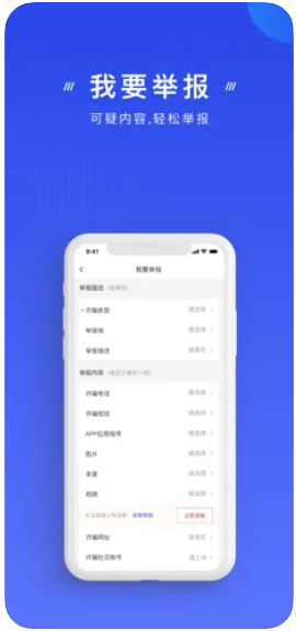 1、我要举报,可疑内容快速举报,帮助他人提前防范,报案助手,涉案信息快速填写;