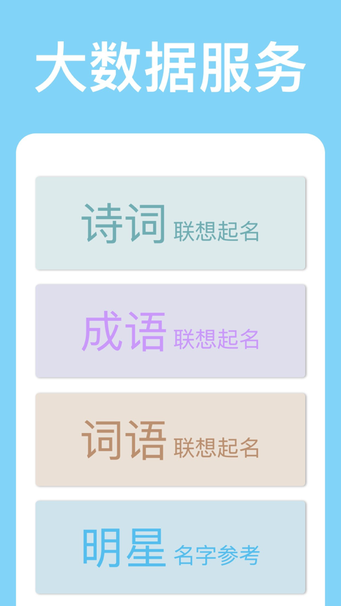 4、拥有诗词联想起名、成语、高频词谐音起名、文字搭配取名等功能。