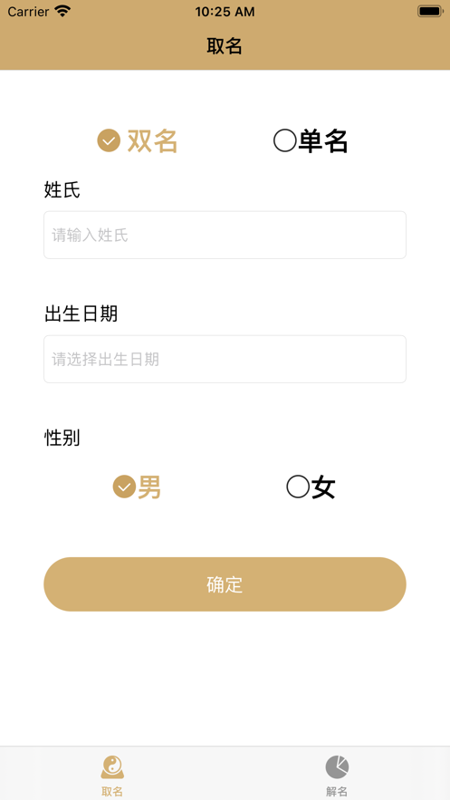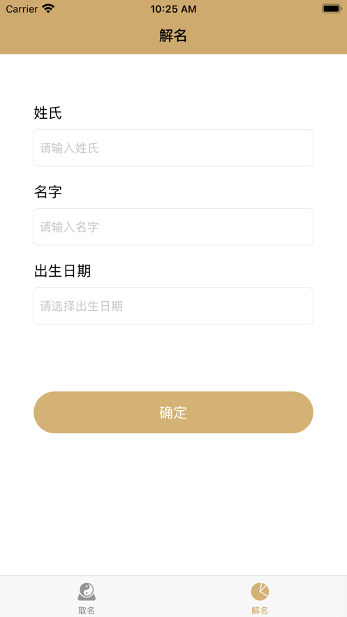 3、用户只需要输入自己的姓氏和名字, 以及生日, 就能得到关于自己姓名的分析。