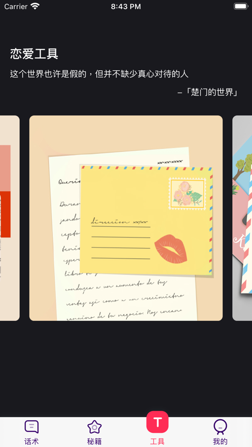 1、恋爱教程,拥有成千上万的可搜索恋爱话术,套路惯例与聊天模板。