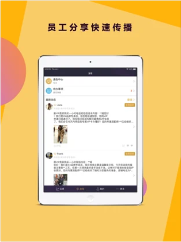 3、拥有丰富的发现页面资料信息,这里有通告中心、待办事项和最新动态展示栏内容。