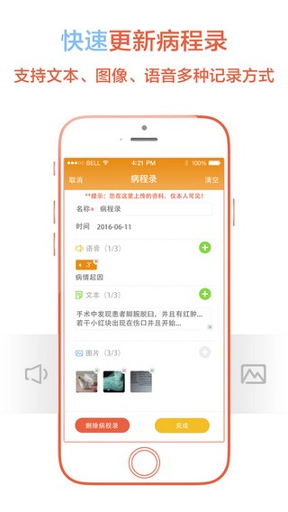 医数医生端app是一款专注于骨科与康复科诊中与诊后的智能病程管理平台。医数医生端app向医生提供强大并精细的专业骨科病程管理及随访方案,智能的管理病患,减轻医生负担,精准有效推送并收集病患信息及反馈,为医院科室及医生提供智能医疗数据采集与分析。医数医生端app下载就在yn下载站。