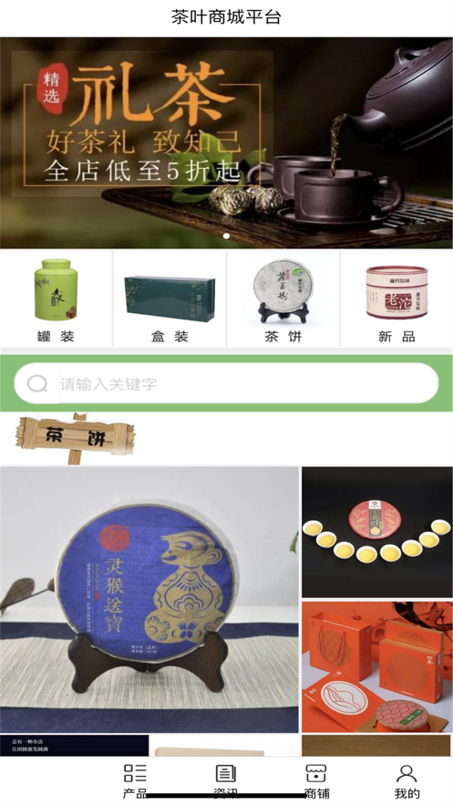 1、平台首页提供的茶叶类型多种多样,有罐装、盒装还有茶饼等等应有尽有;