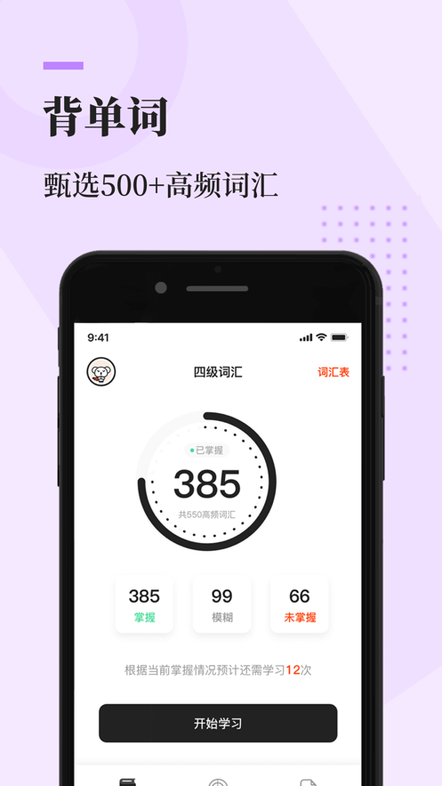 1、超多的英语词汇为大家选取最高频率出现的单词,平台会为用户统计背下的数量;