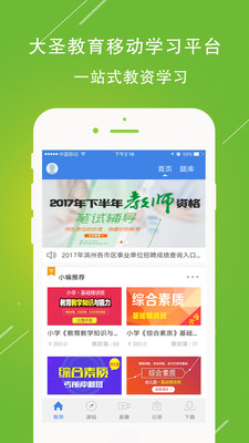 1.大圣教育苹果版软件第一次登录访问课程视频、在线播放课程视频需要网络连接。