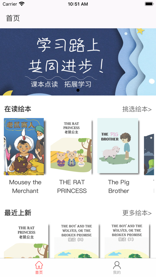 1、极简的界面设计、易用的功能,看绘本、听朗读、锻炼听力语感;