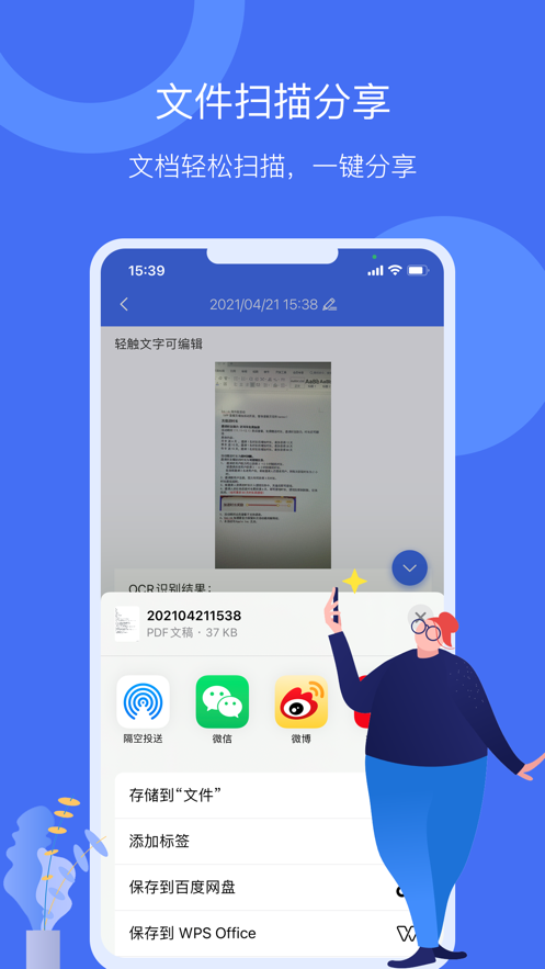 3、通过电子邮件和当下流行的社交平台可以和他人轻松共享扫描后的文档。