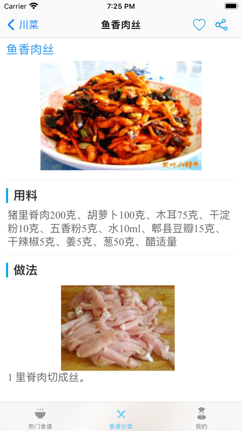 2、看到喜欢的菜谱可以点击一键收藏,下次查看的时候可以更加便捷;