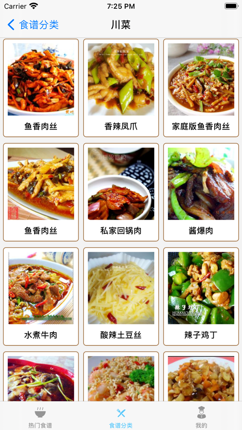 2、进行了多达14个维度数百种分类,包括家常菜谱、西餐菜谱、烘焙食谱等等;