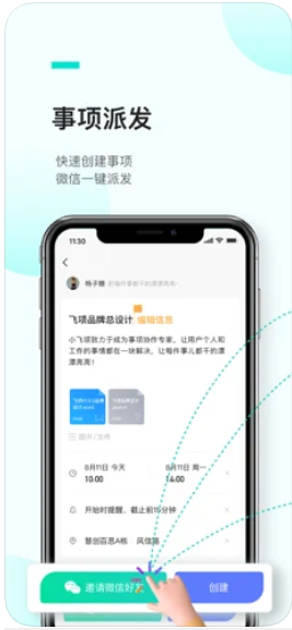-微信快速派发协作人,事项同步进入协作人日程,让协作亲密无间