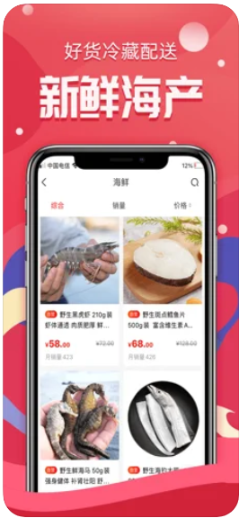 4、软件产品丰富,提供水果蔬菜、海鲜水产、肉禽蛋奶、速冻冷饮等精选生鲜食材。