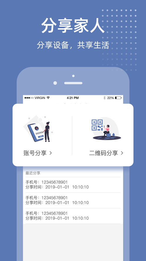 3、可将设备分享给亲情账号,权限由用户进行自由控制。