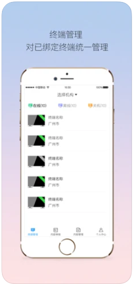 3、掌上进行终端设备管理,支持同步查看终端设备运行状态,投放状况等。