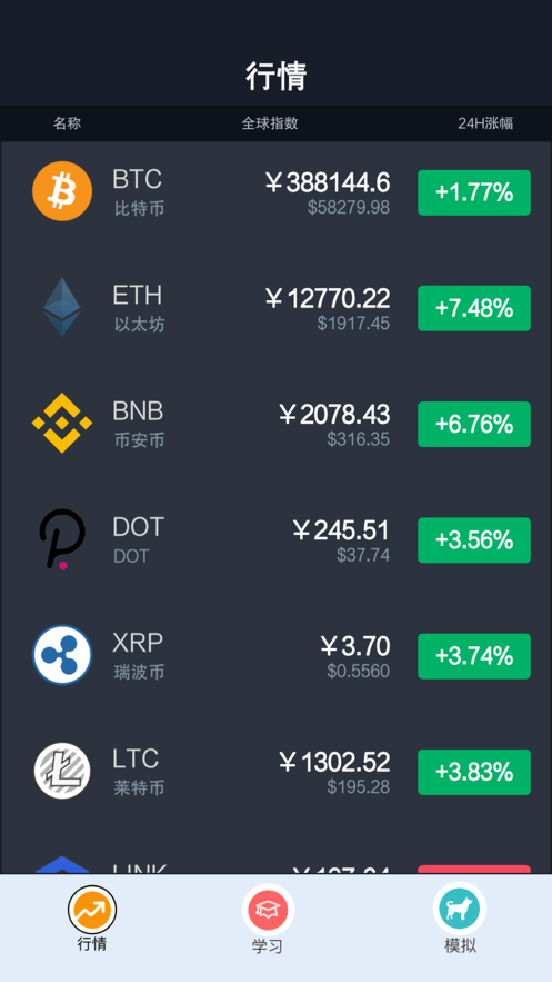 1、狗狗大亨app下载后为用户提供热门数字货币的实时行情;