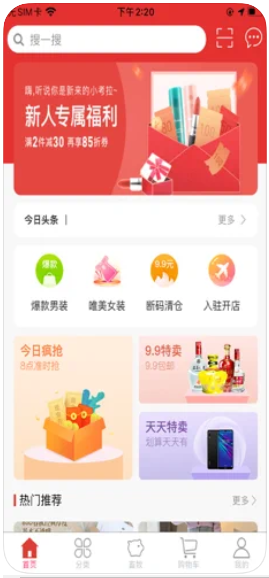 2、还有许多便捷的优惠导购窗口,涵盖今日爆款、买就送和9.9特卖多种不同的窗口;
