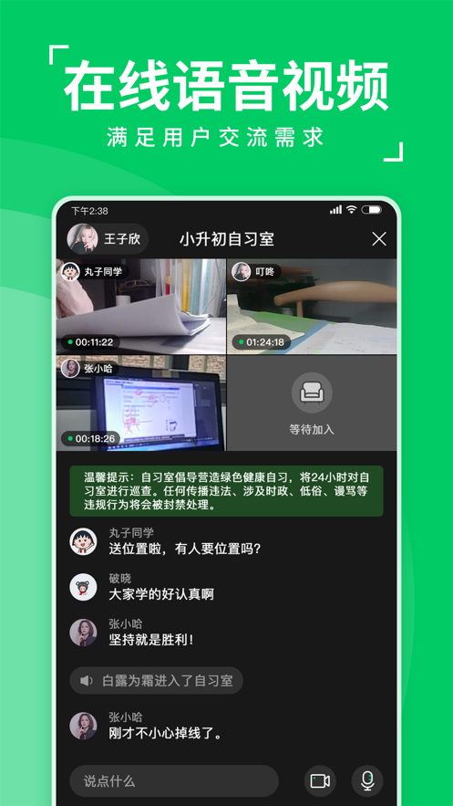 3、家长旁听:不在孩子身边,家长也可以随时随地打开手机来查看老师和孩子上课实时情况;