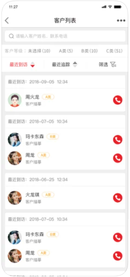 4、掌握客户动态,任意一个最近到访、最新追踪的客户可以快速找到。