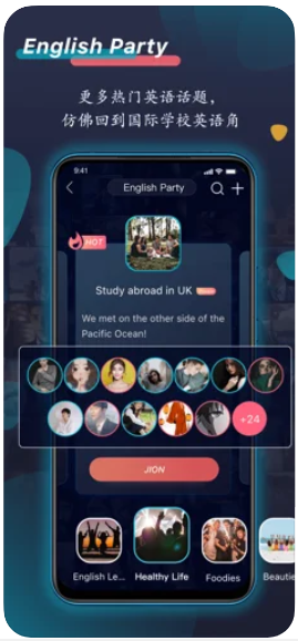 【英语派对】海量志同道合朋友和热门话题,随时用英语触摸灵魂,仿佛回到国际学校英语角,让我们随时随地站在英语最前沿。