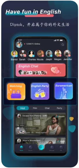 【一起看美剧】可以一边看海量欧美原片电影剧集一边用英语跟房间里朋友热聊剧情,中英文字幕四挡切换,让我们耳朵和心灵完全沉浸在外语世界里。找个异地朋友一起创建房间,同屏看剧,一边看一边吐槽。也可找开好的房间,认识新朋友,从此看剧学英语,不再孤单。