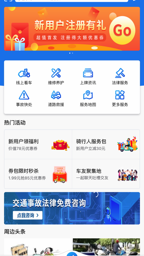 2、车主出现意外交通事故,可通过法律服务模块进行法律咨询,维护自身合法权益;