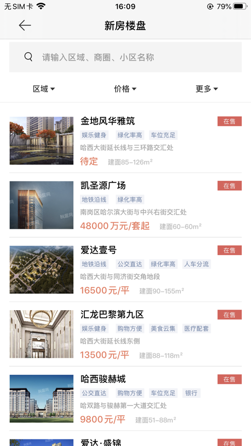2、同城本地的各种楼盘动态一目了然,用户可以直接搜索附近的房产信息;
