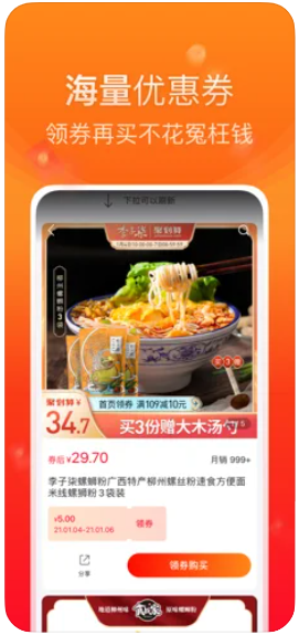 省钱:百万优惠券,让你省钱购买喜欢的商品。