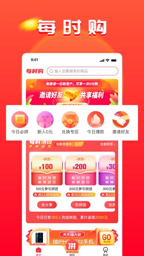 1、每时购app下载后新人可以享受首单0元购物的机会,十分省钱;