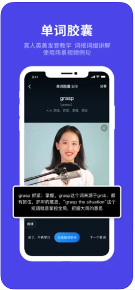 【高效记单词】中英字幕,随时暂停,速度调节,英语单词点击查看释义。释义对比百科全书,牛津词典,中英词典,灵活准确。发音跟读,美式英语,英式英语发音帮你联系发音。结合视频口语发音,帮助了解日常英语用法