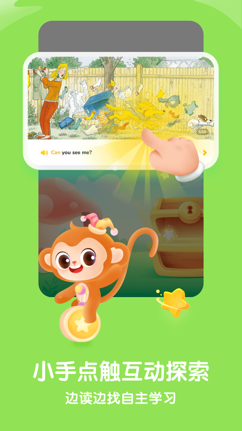 1、以日常生活中一个个妙趣横生的故事为题材,引导用户从零到一开始英语阅读启蒙;