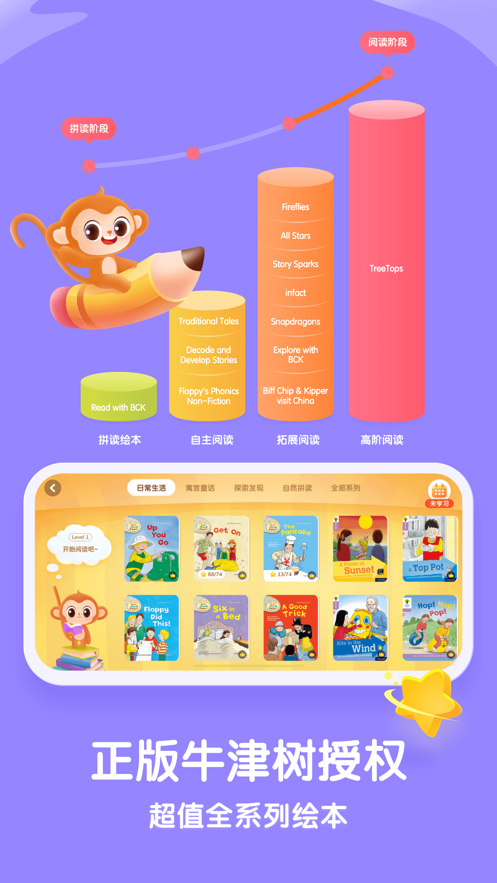 3、软件内拥有一千多个跨领域多主题的牛津阅读树系列绘本 ,并且会进行定期同步更新。