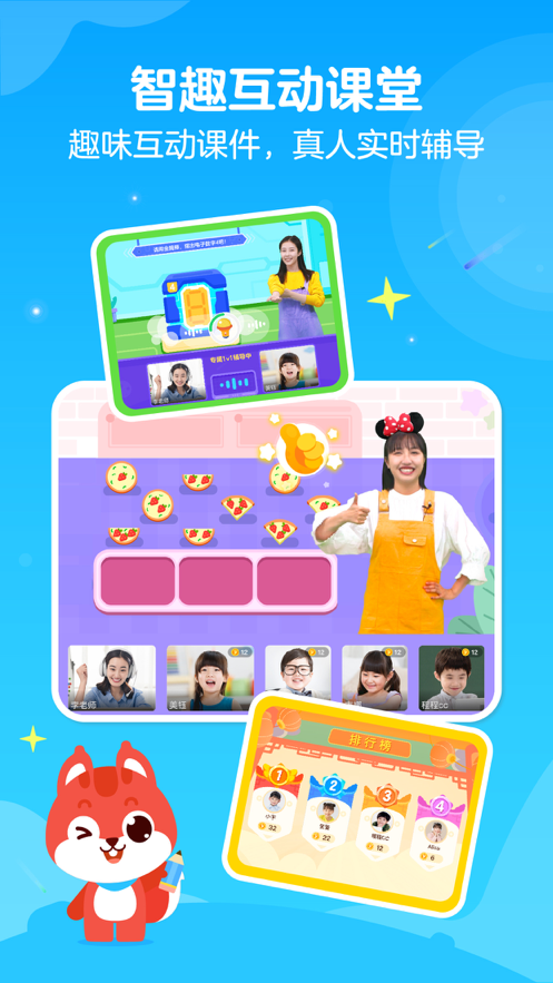 2、真人辅导陪伴学习,直播趣味互动,知识巩固提升,轻松学习;