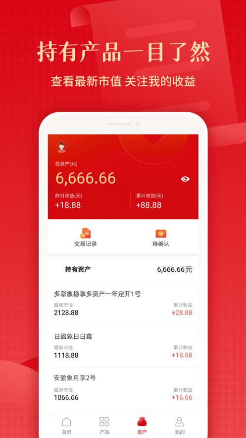 1、服务全:持有产品一目了然,查看最新市值,时刻关注自己的收益;