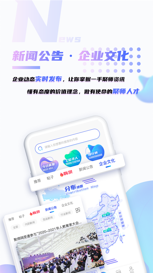3、企业动态实时发布,让用户能够尽快掌握新鲜的聚师资讯信息;